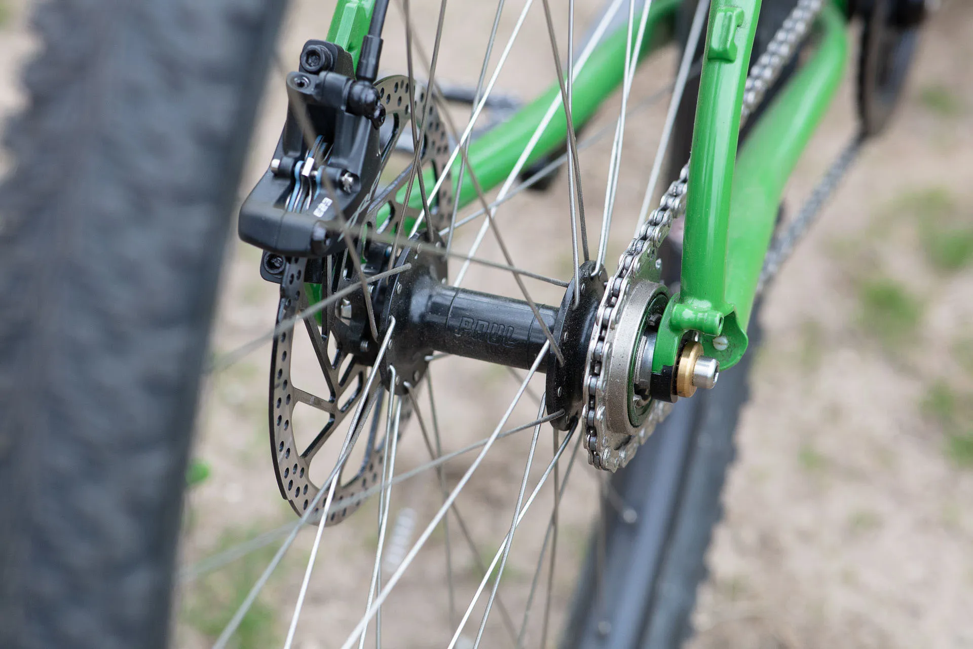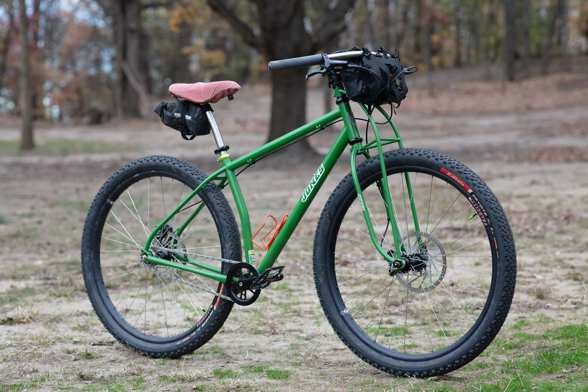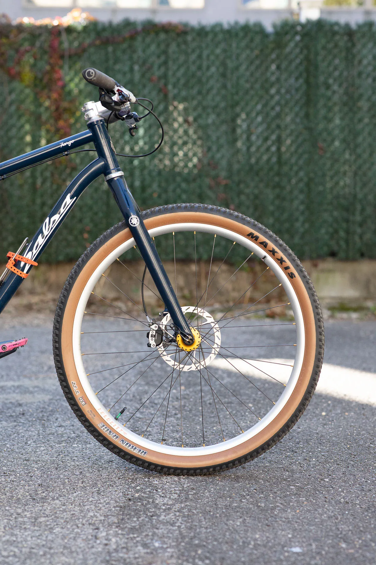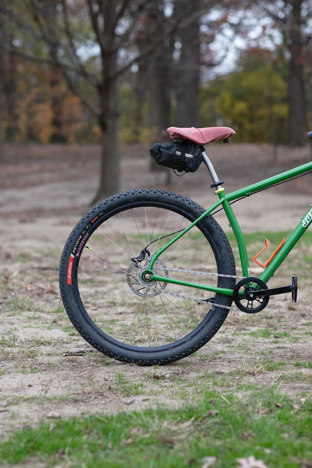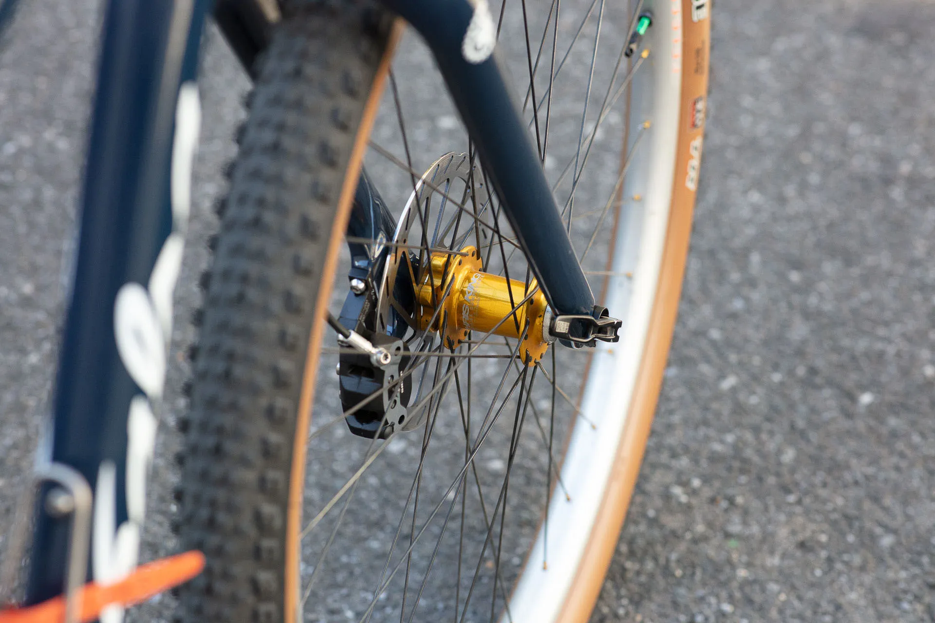 Paul SS disc hubs (Jones specific 135 front), Velocity Blunt 35 rims, Peyote XC race tires