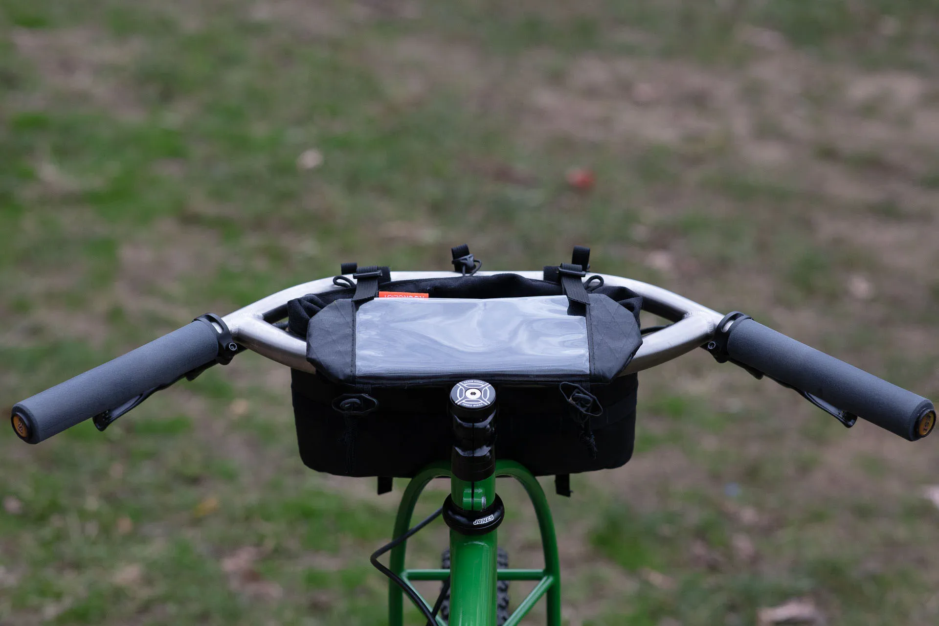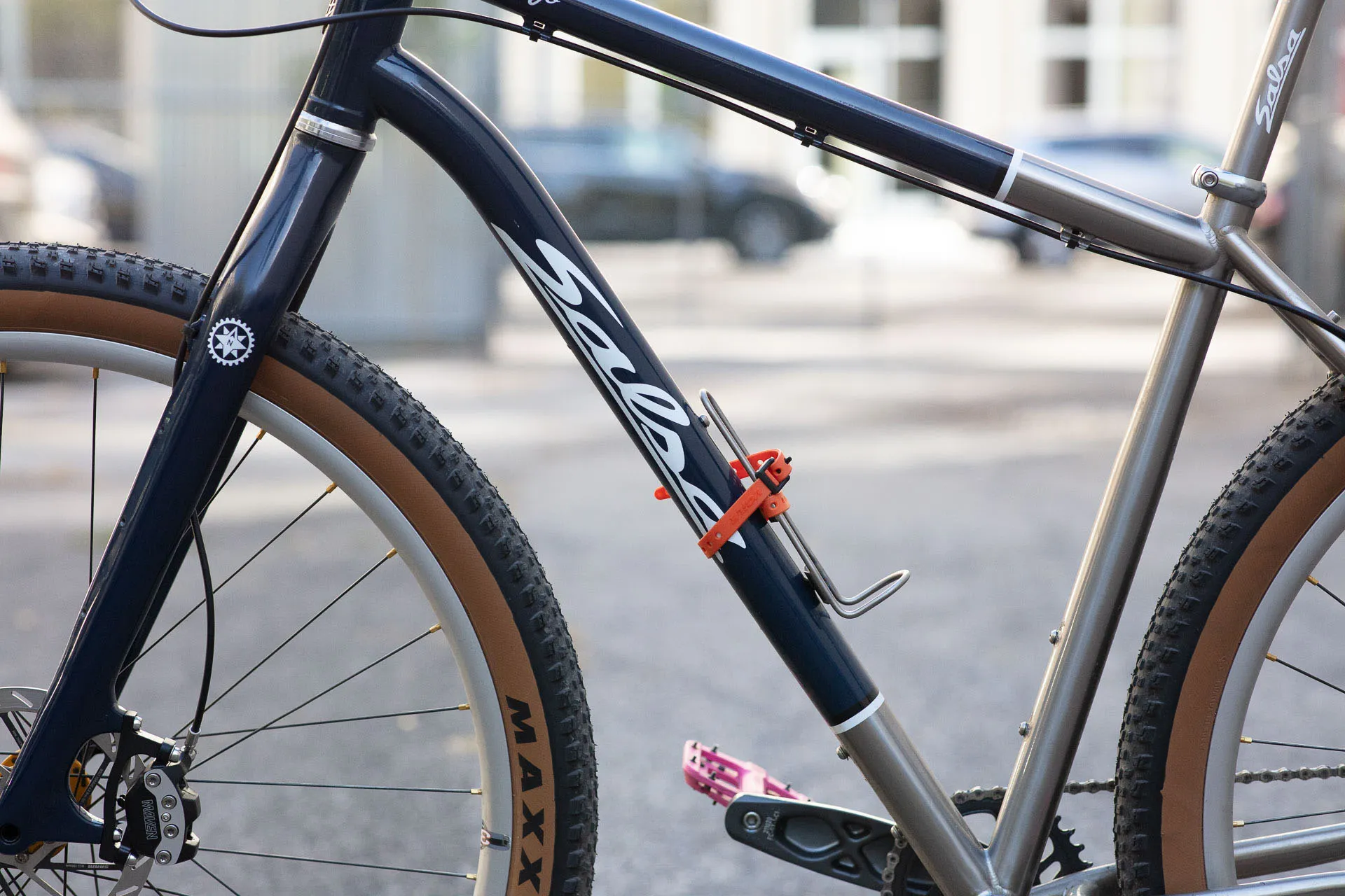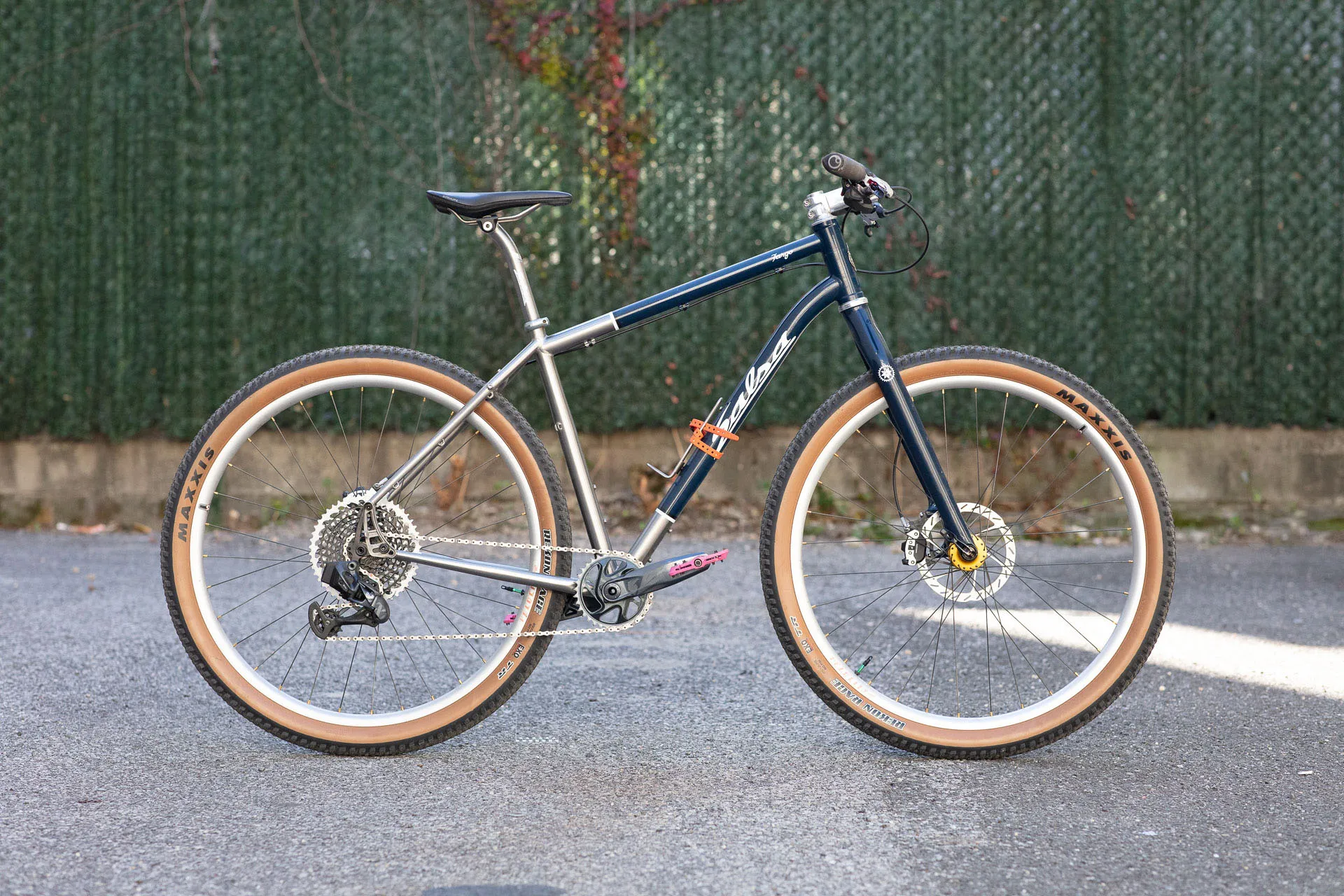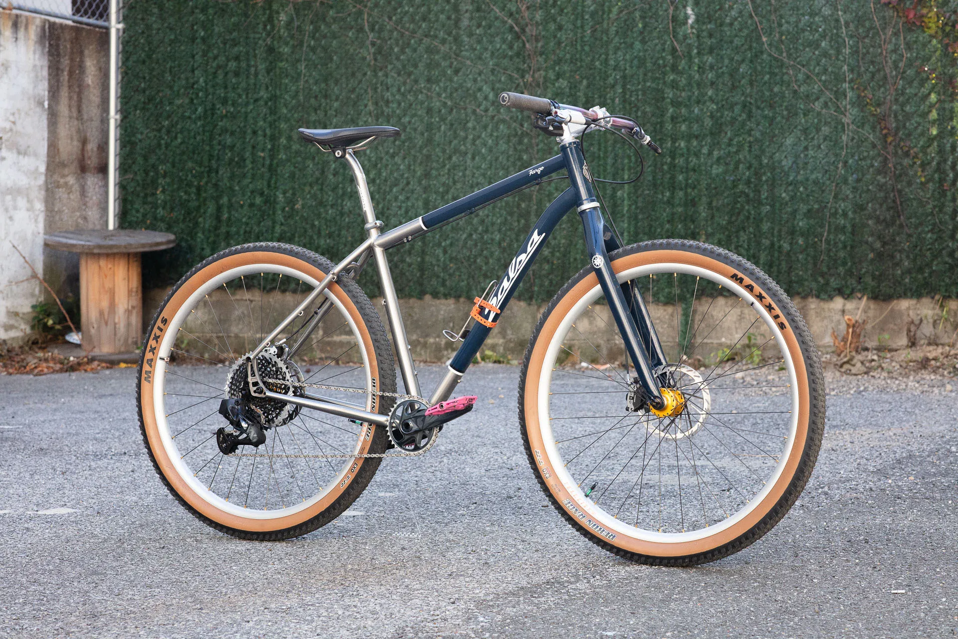 Frameset is 2014 Salsa Fargo Ti with matching carbon fork. Built this up with drops initially but bike ending up doing mostly towing duties and was swapped to this flat bar set up. The Fargo is a bit of a dinosaur now but the geo is great for building up a variety of ways. Very stable and smooth with or without a load despite sitting quite high off the ground. Was happy to build this up with a lot of silver + chrome bits instead of black. Overall a really versatile and comfortable bike to do pretty much anything with. Ancient Chris King + Velocity wheelset given new life with current gen CK axle swap <3