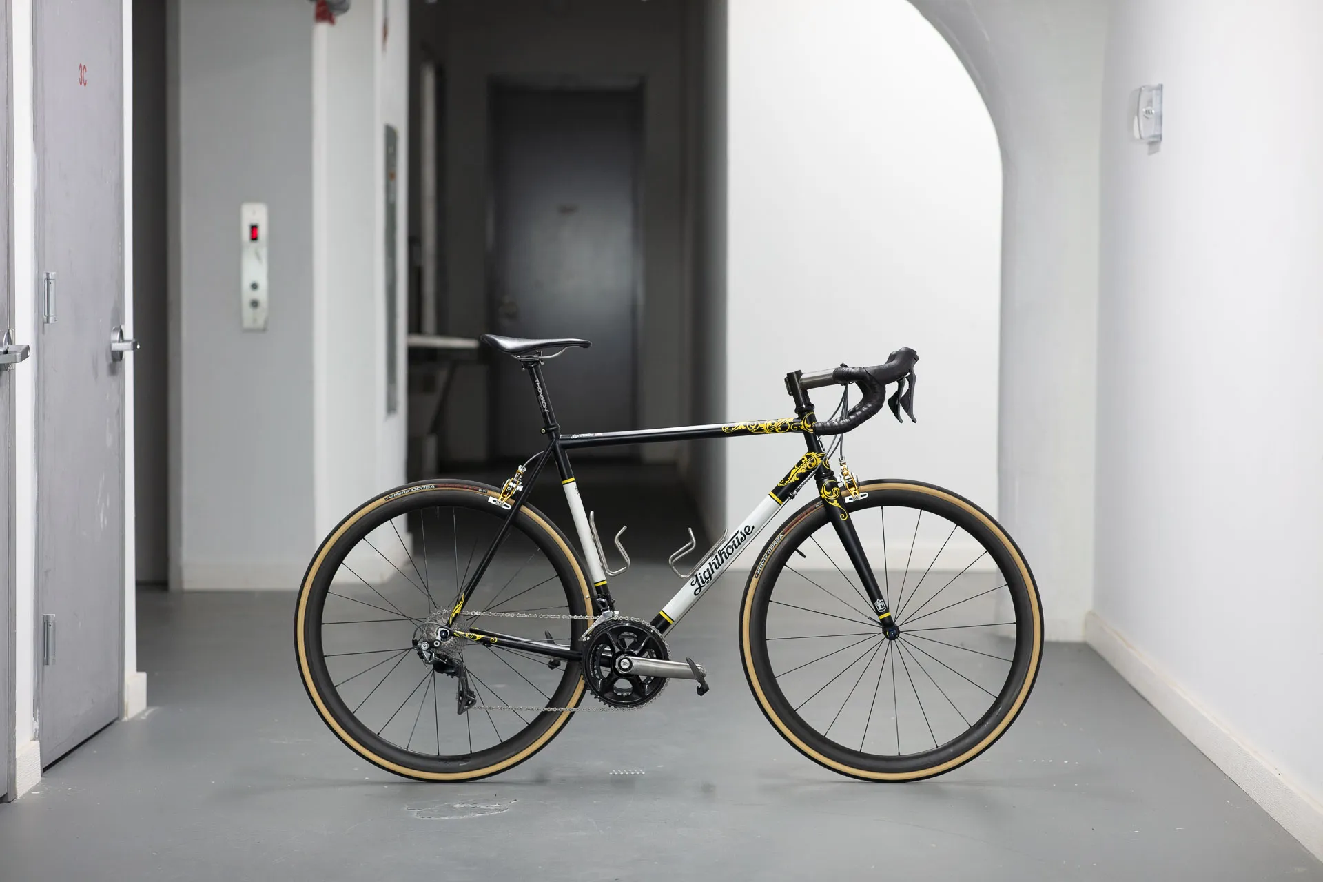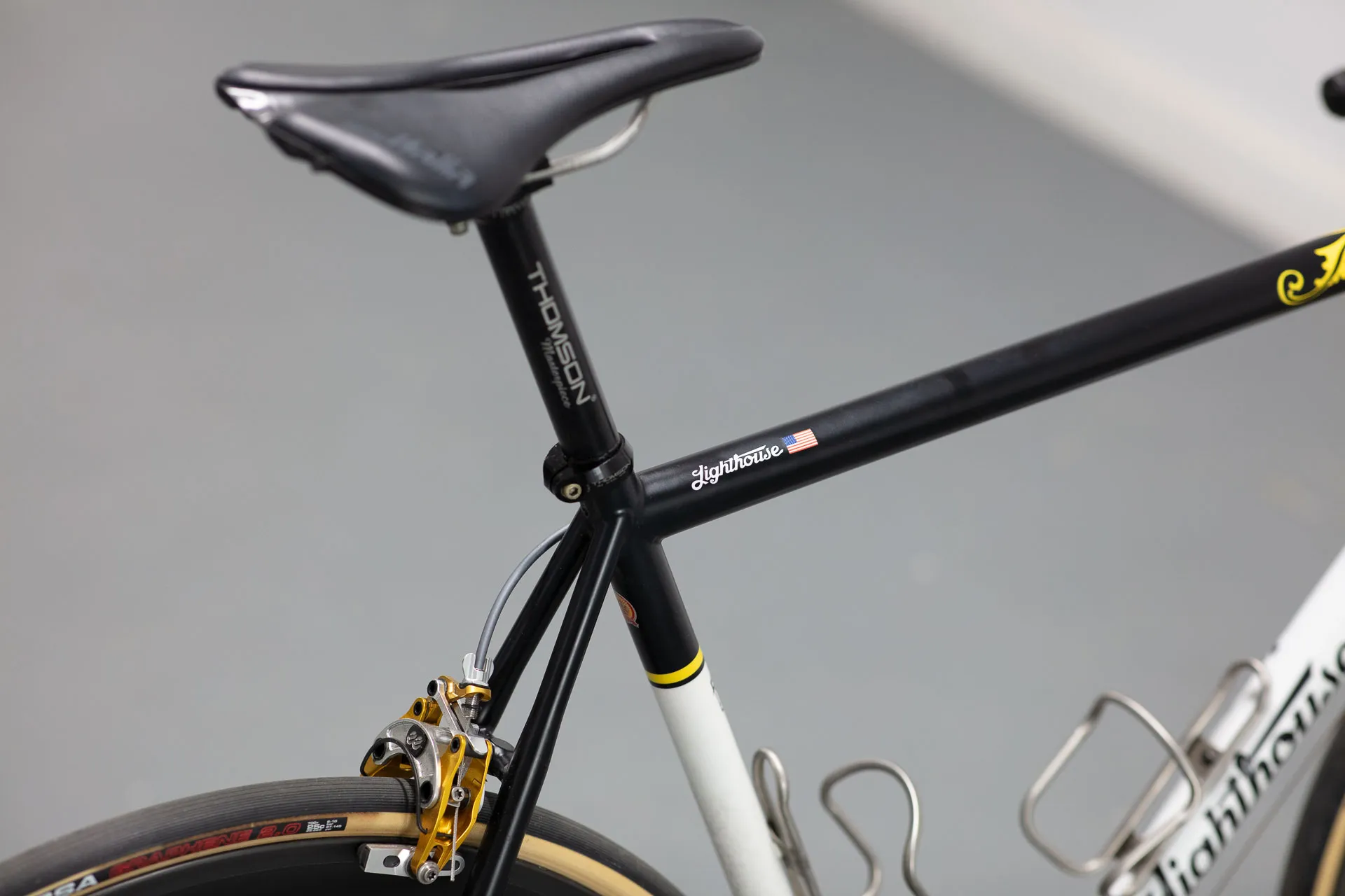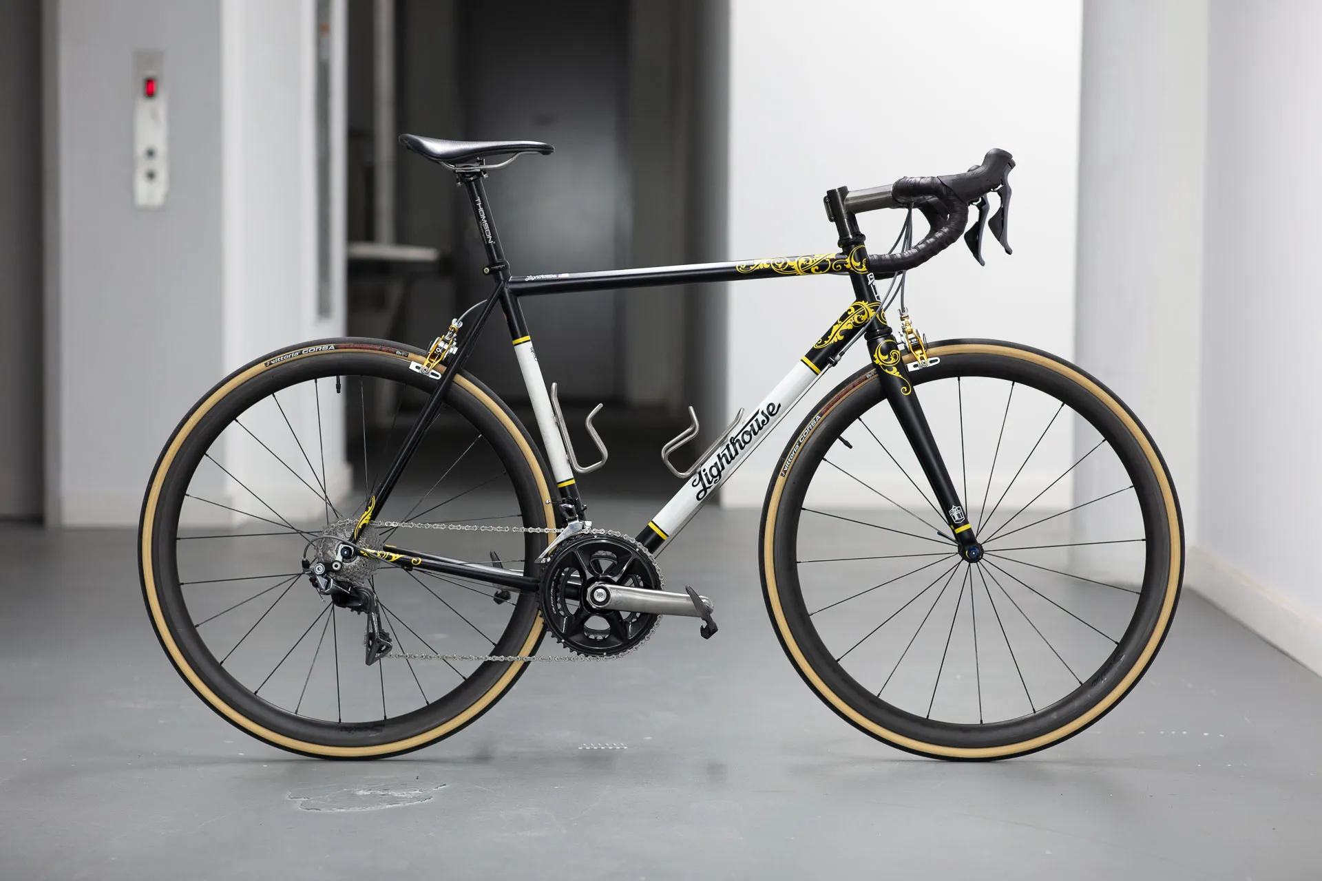 This frame is someone else's custom build project (elaborate paint included) made by Lighthouse but built up by me - generally weight weenie approach. Fork is Enve, custom painted to match and I do have a 3t carbon stem with the same paint as well to go with this. Geo wise I believe it is based off of an Eddy Merckx frame - rides and handles very well IMO. Tubeset is True Temper S3 which results in a very light frameset that still has a good steel feel with the right amount of spring. Typical rim brake weight weenie bits - MCFK, Carbon-Ti, ee Brakes, ee Wings, etc. Alloy bars from Ritchey that are my road preference and alloy Thomson bits. The paint is definitely not what I would have chosen but it was definitely a lot of work and the way the bike rides and feels makes me forget the paint once i’m riding. Not many S3 frames still around sovery special for that reason alone.