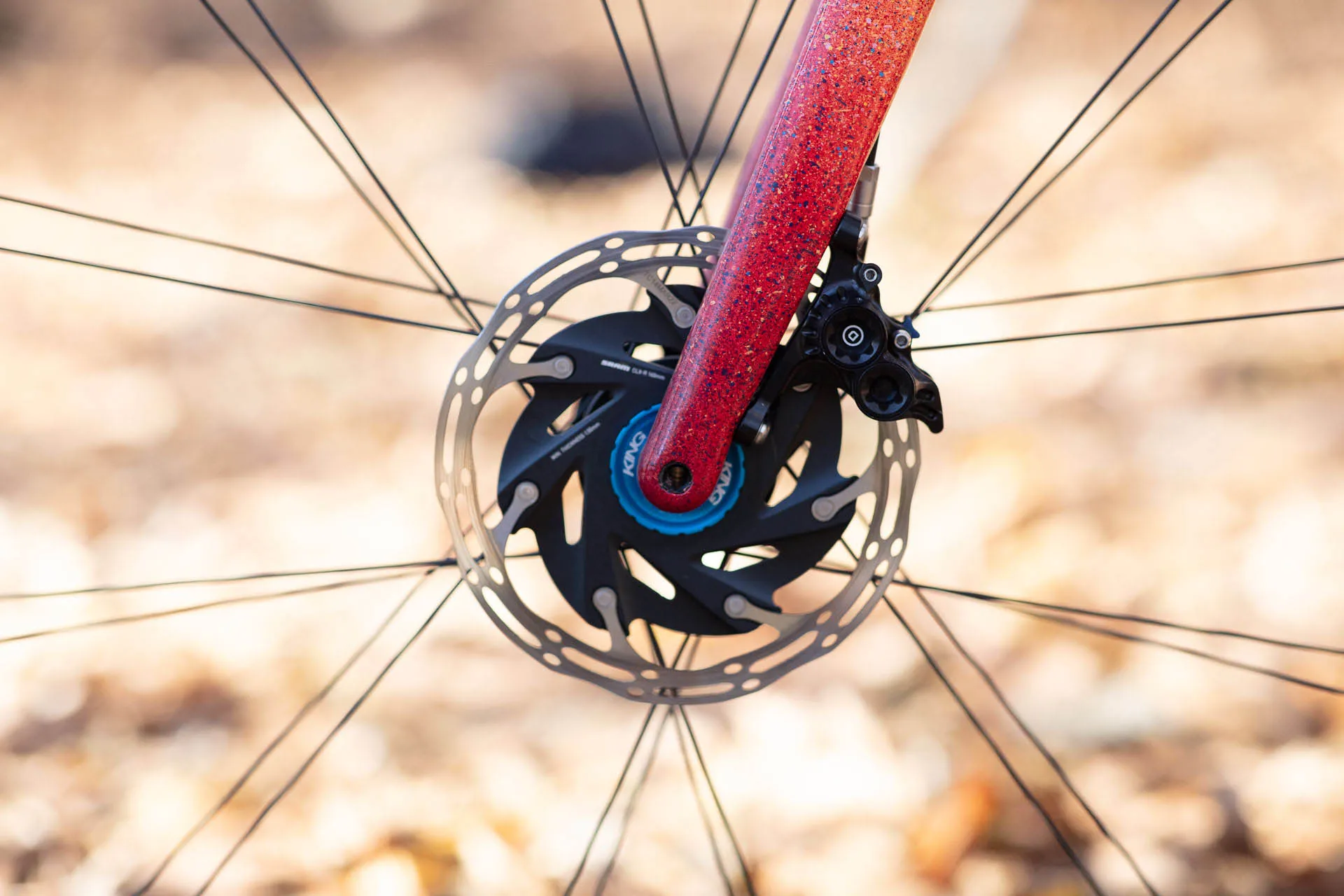 Chris King ISO hubs converted to thru axle, Velocity Blunt 35 rims, Maxxis tires + Vittoria inserts