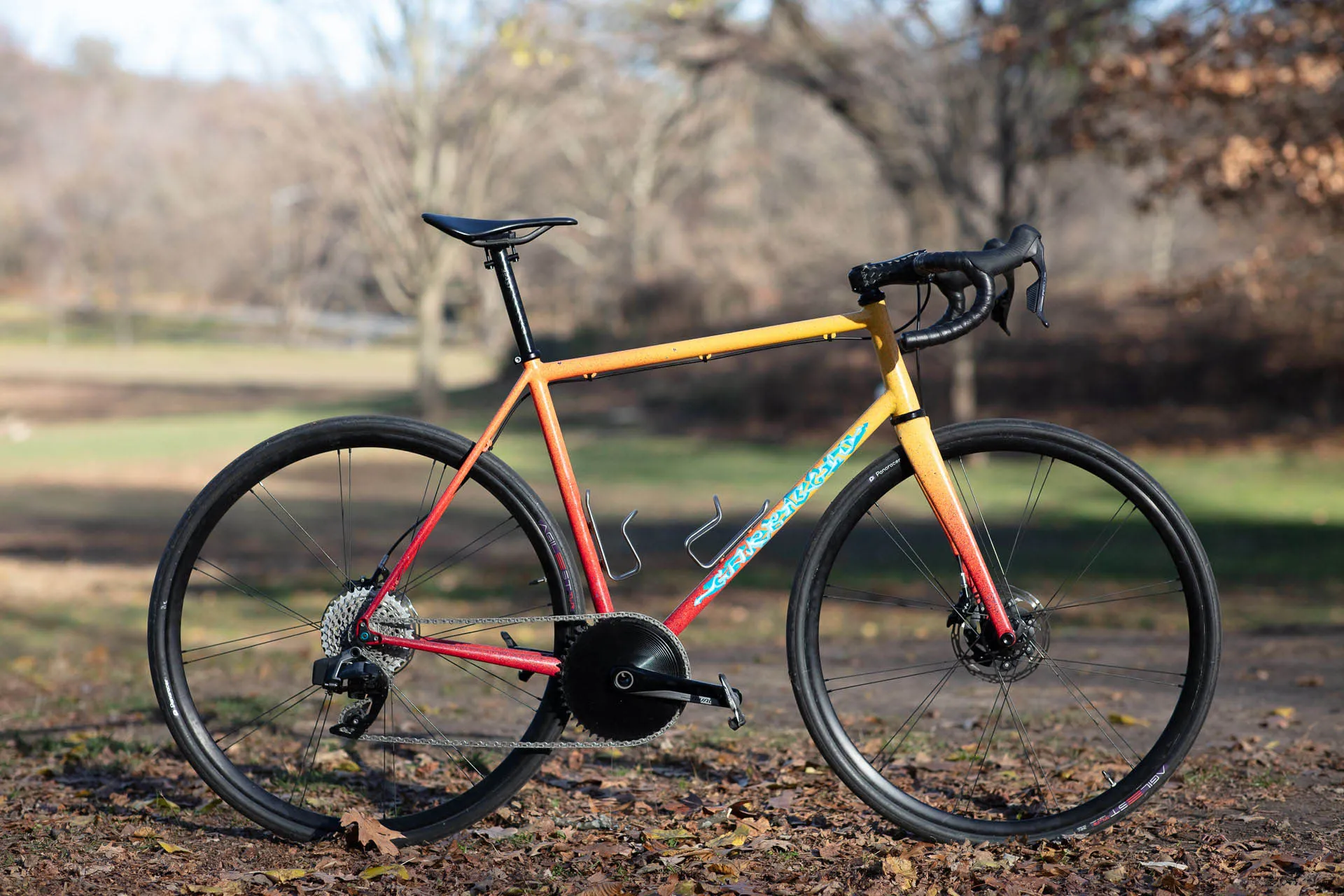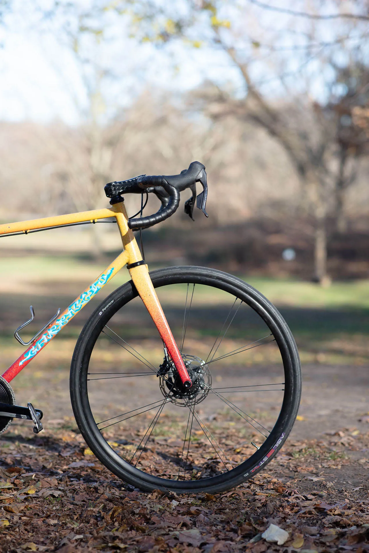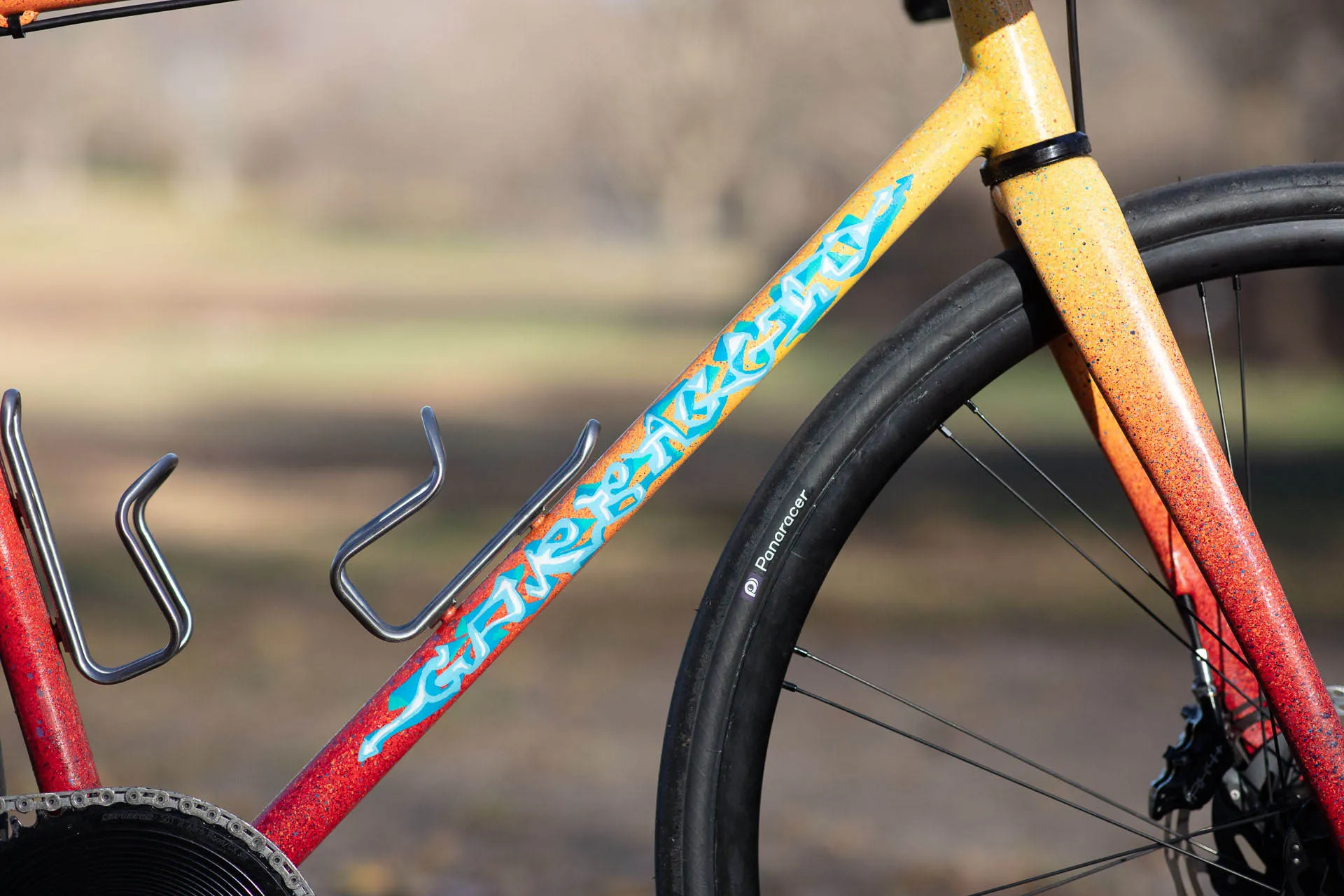 Frameset is a 2005-2007 (?) Lemond Sarthe with a very cool (IMO) custom paint job. I have a soft spot for Lemond bikes and have had this road bike for quite a while now - build up a few different ways over the years. Purchased with unknown (but likely) a lot of miles already and somehow still has a great steel feel with plenty of spring. Sram 2x11 now, will most likely stay that way. Has been a reliable and fun to ride bike for me the entire time I’ve had it. The special paint is the icing on top <3